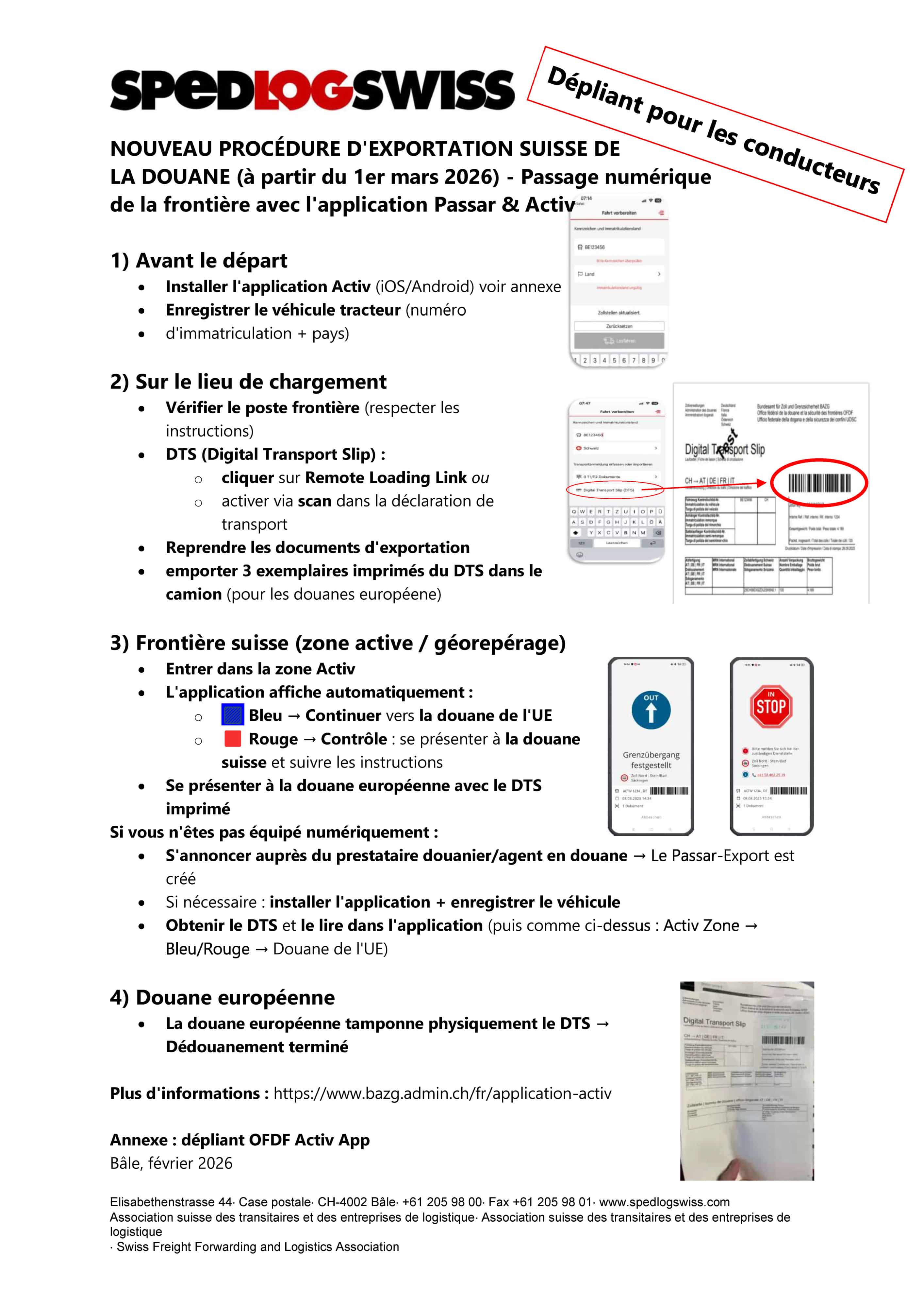 Nouvelles procédures pour le passage en frontière des exportations suisses par route – Informations officielles applicables dès le 01.03.2026.